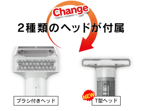 新モデルRNS-P10では、クリーナーヘッドがブラシ付きヘッドとT型ヘッドの2種類になって、付け替えることが出来るようになりました♪