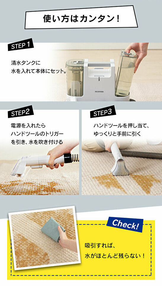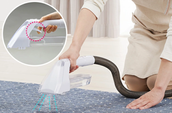 リンサークリーナーは、水を噴射して、水ごと汚れを吸うものなので、水の噴射は必須です。