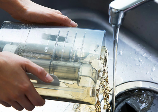 それでも落ちにくい汚れや、染み付いた汚れは、アルカリイオン水などの洗浄剤などで汚れを浮かせてから洗浄すると効果的です。